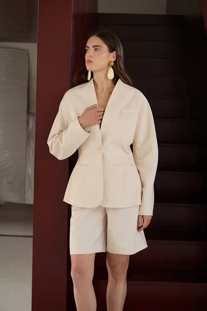 Для этой модели бермуд мы выбрали длину до колена, две складки спереди добавляют комфорта, а карманы с отрезным бочком добавляют универсальность. Материал держит форму и устойчив к влаге.