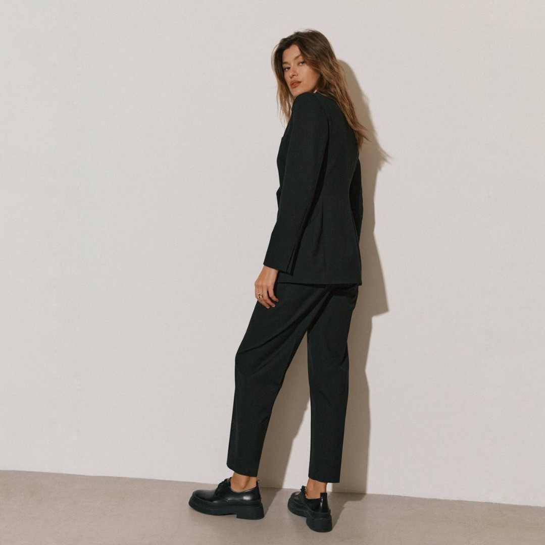 Классические брюки бананы с широким коленом. Заужены на щиколотках.