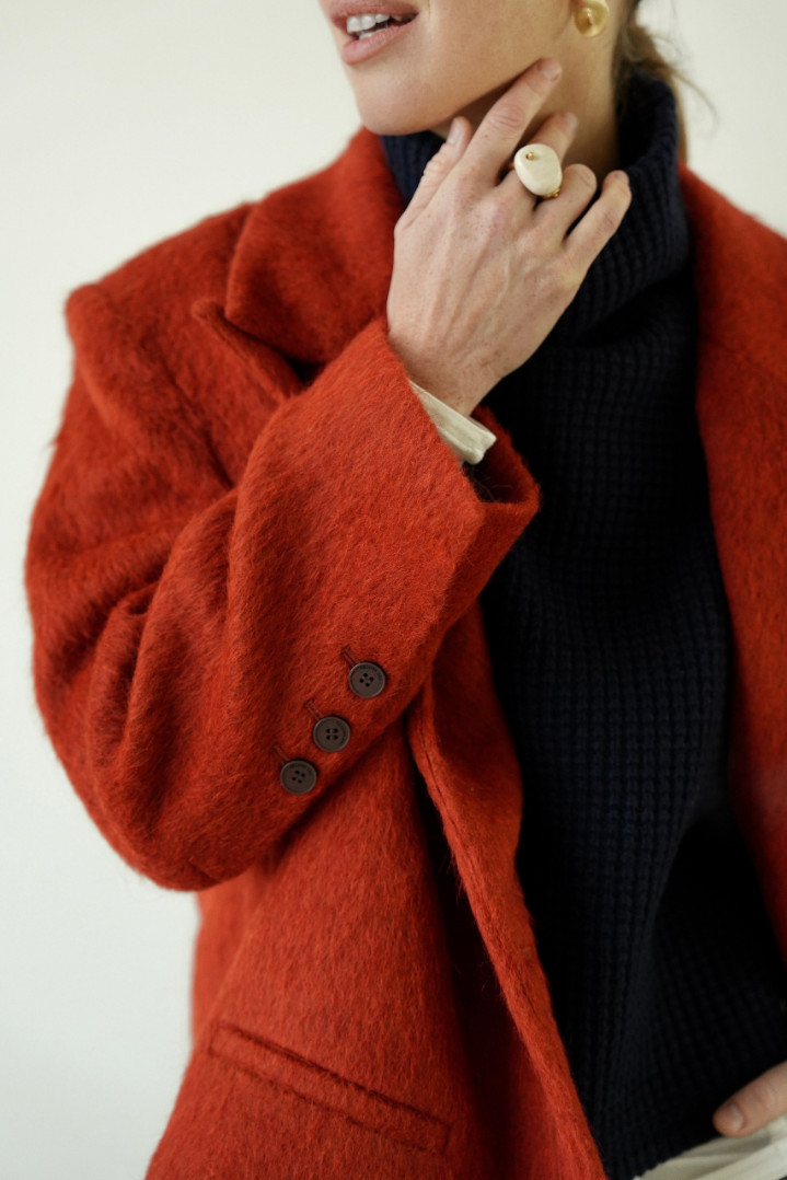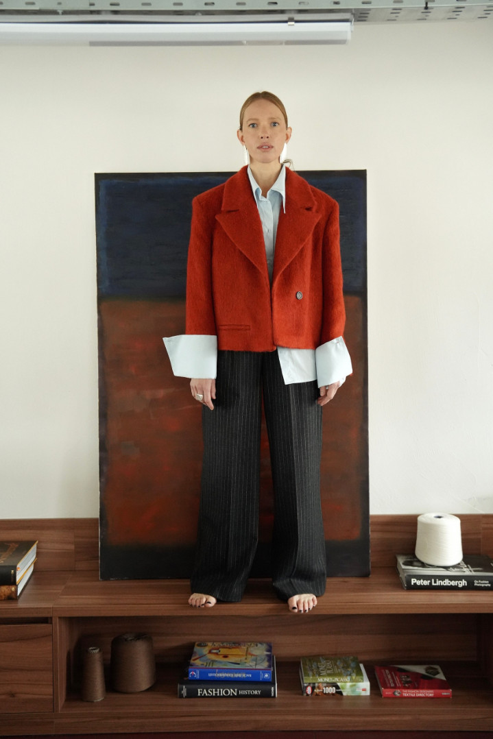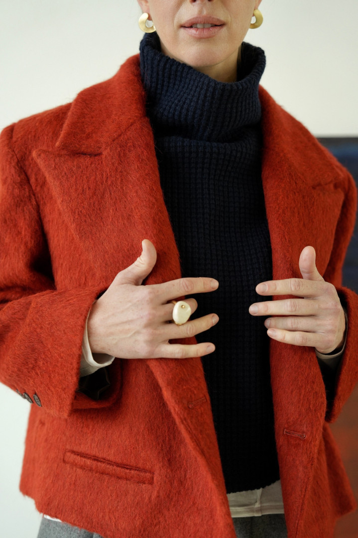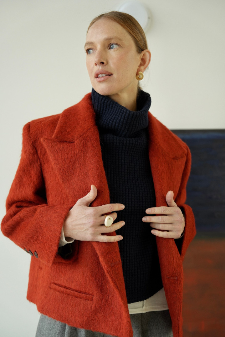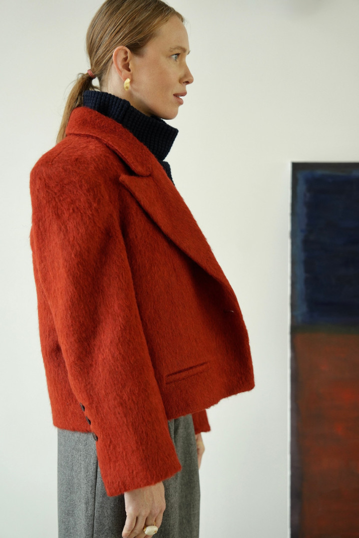 Укороченный жакет-пальто из итальянской шерсти в цвете терракот. Позиция, с которой началась коллекция ROTHKO. Это пальто сделает даже самый классический образ стильным и притягательным.
