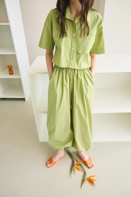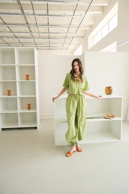 Брюки-аладдины с мягкой посадкой и воздушным силуэтом. Эластичный пояс со шнурком и сборка на щиколотках создают расслабленный, но собранный образ. Карманы в боковых швах про удобство без лишних деталей. Эти брюки будто созданы для лёгких шагов, свободы движений и стилистических экспериментов.