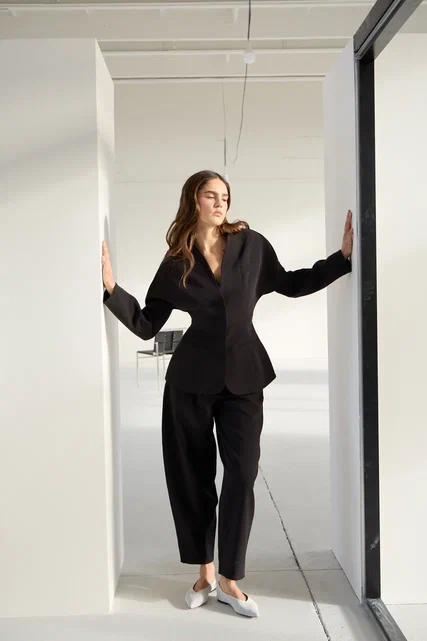 Сочетайте жакет с брюками балун или носите с однотонной юбкой.