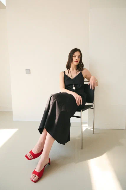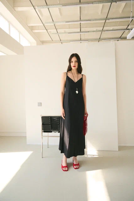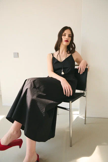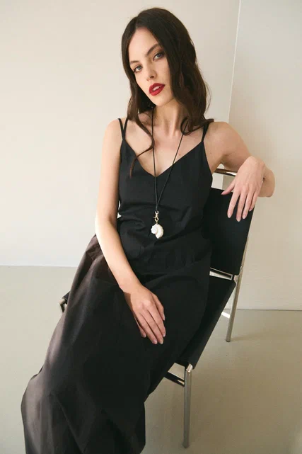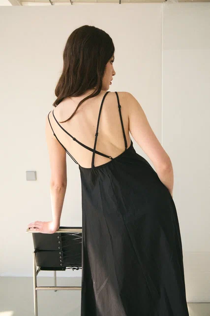 Легкое хлопковое платье макси с регулируемыми бретелями. А-силуэт и собранная спинка на бретелях  создают воздушный и удобный летний образ.