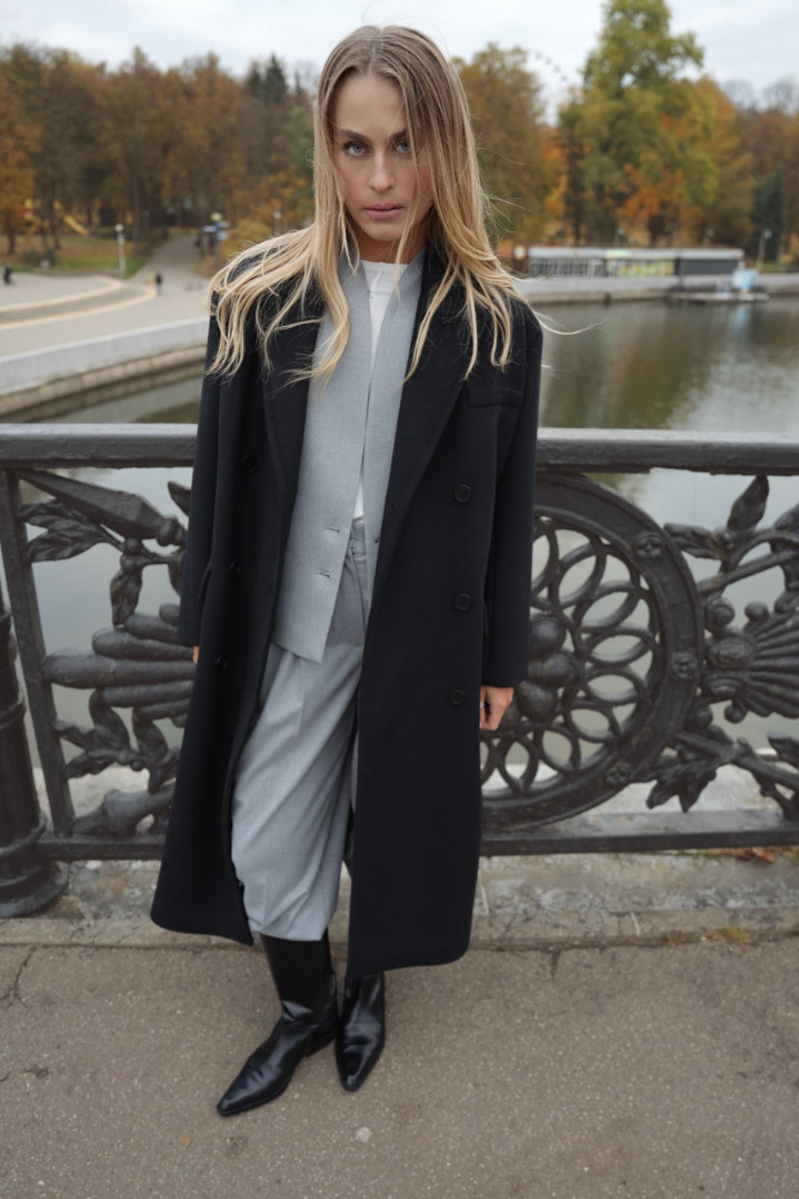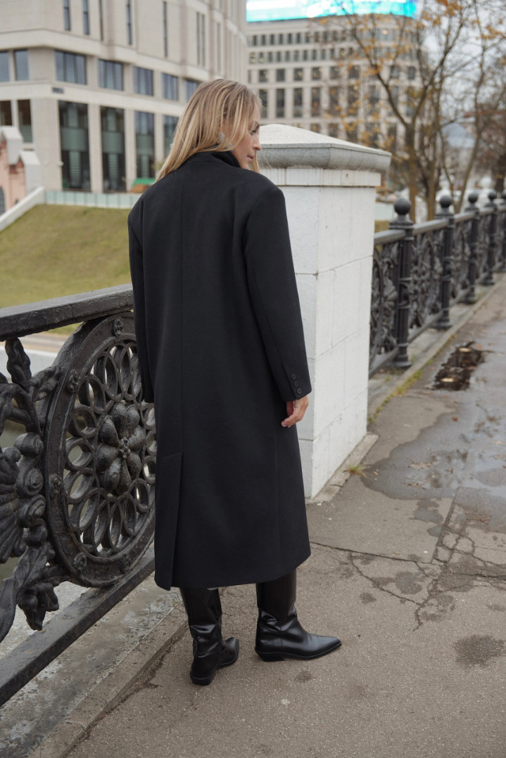 Пальто макси из шерсти. Спущенная линия плеча и умеренный овер делают его комфортным и несковывающим движения. Акцентные лацканы добавляют образу дерзости. Длина пальто на 10 см больше классической двубортной модели пальто The Suitter.