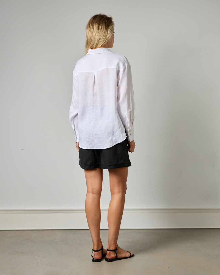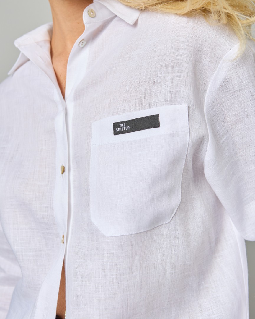 Базовая рубашка изо льня прямого кроя с фирменным логотипом THE SUITTER на нагрудном кармане.