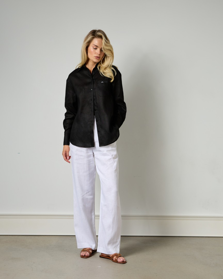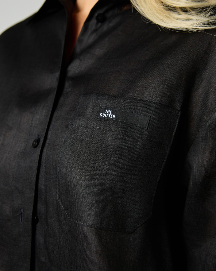 Базовая рубашка изо льня прямого кроя с фирменным логотипом THE SUITTER на нагрудном кармане.
