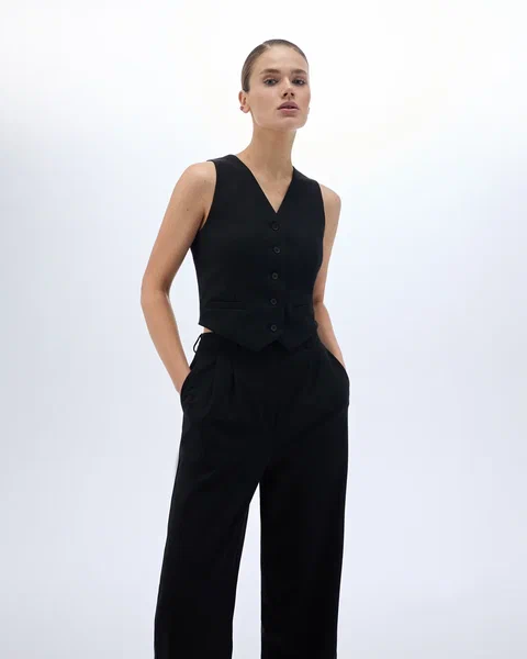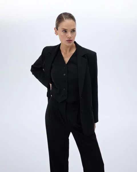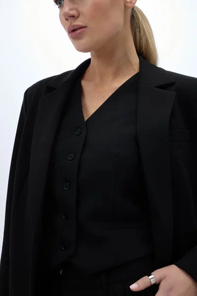 Стильный жилет из костюмной ткани прекрасно дополнит костюм и добавит сексуальности, если вы решите надеть его на голое тело.